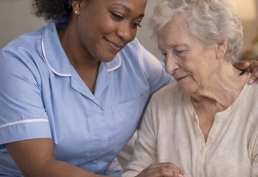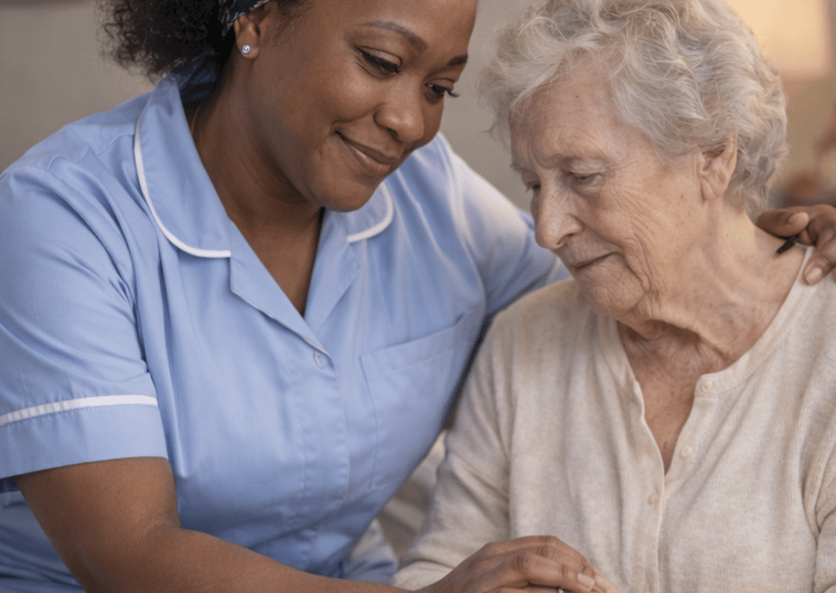 Laetitia, aide-soignante, accompagne avec douceur et respect.